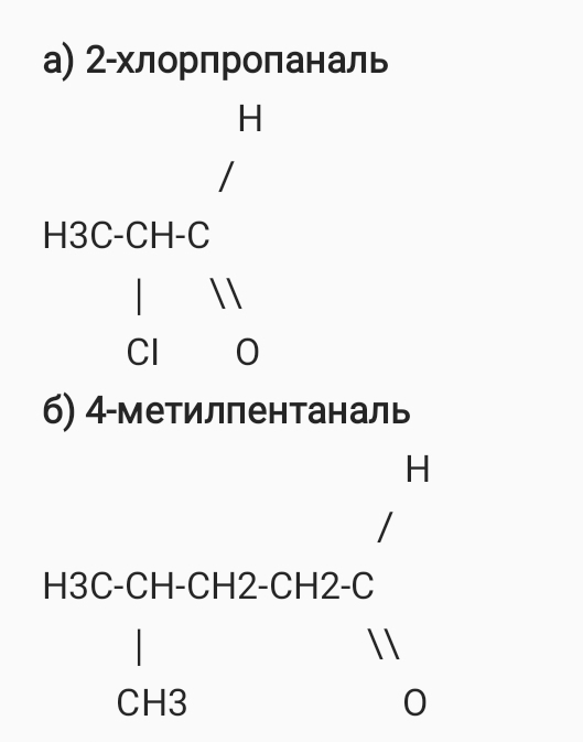 Вы открыли страницу вопроса Напишите структурные формулы следующих карбонильных соединенийа)2 - хлорпропанальб)4 - метилпентанальв)2, 3 - диметилбутанальг)3 - гидроксо - 4 - метилгексаналь?. Он относится к категории Химия. Уровень сложности вопроса – для учащихся 10 - 11 классов. Удобный и простой интерфейс сайта поможет найти максимально исчерпывающие ответы по интересующей теме. Чтобы получить наиболее развернутый ответ, можно просмотреть другие, похожие вопросы в категории Химия, воспользовавшись поисковой системой, или ознакомиться с ответами других пользователей. Для расширения границ поиска создайте новый вопрос, используя ключевые слова. Введите его в строку, нажав кнопку вверху.