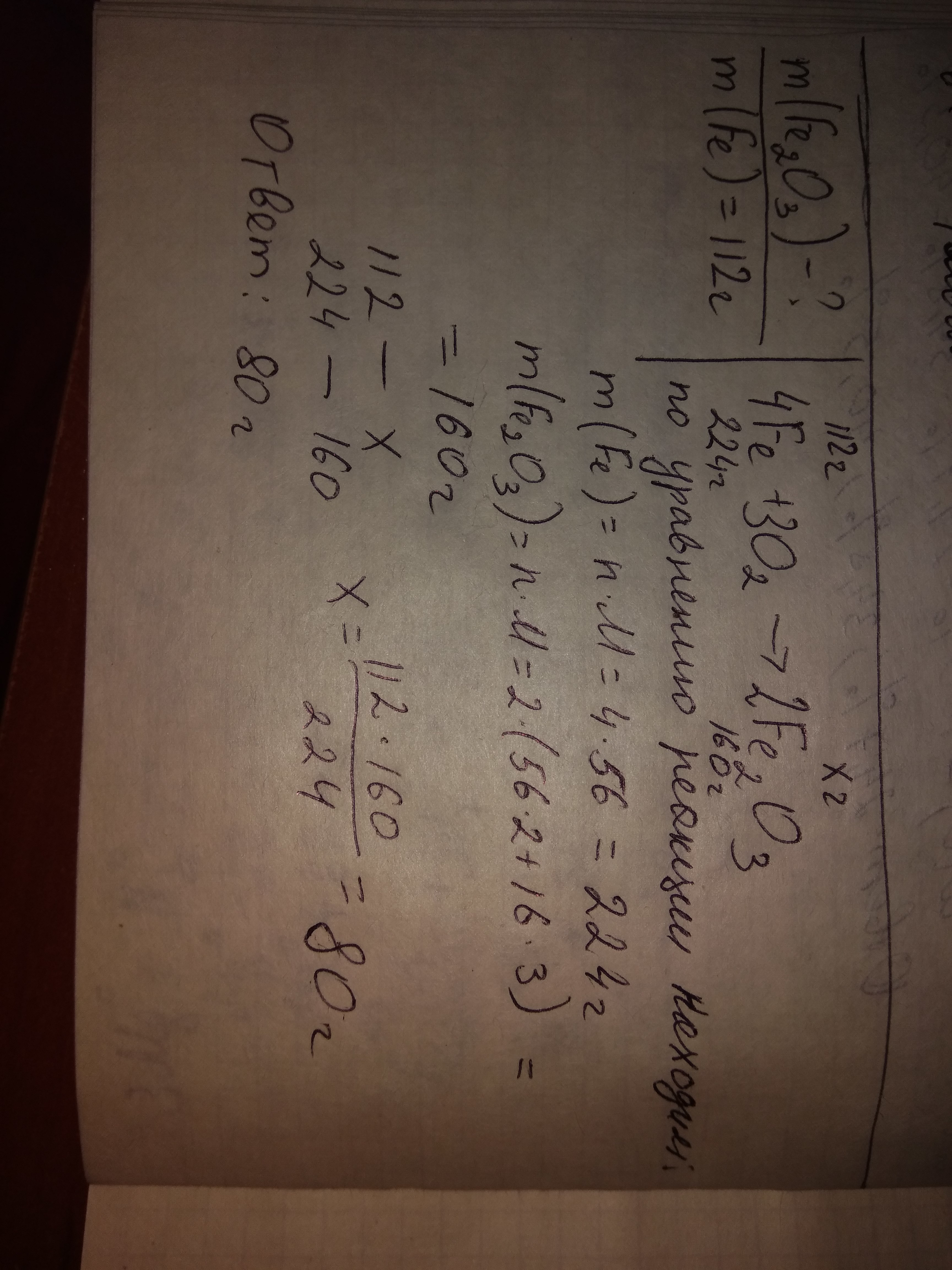 Найти массу оксида железа (III), если железо массой 112 гр прореагировало с кислородом?