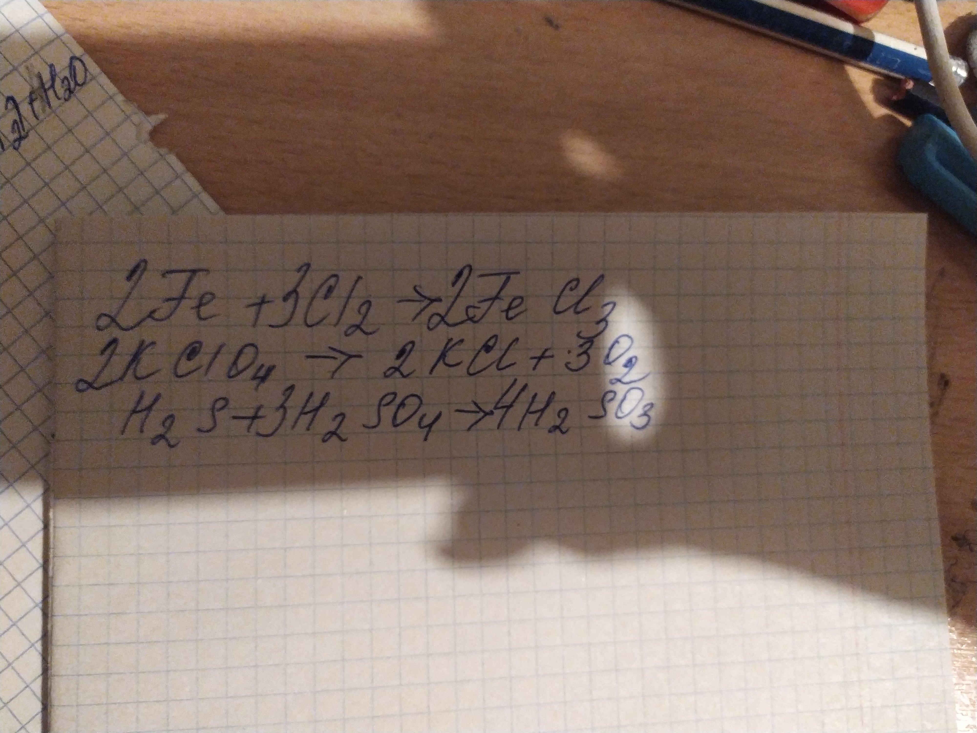 На этой странице сайта, в категории Химия размещен ответ на вопрос Попробуйте уравнять следующие уравнения :а)Fe + Clz - > ; FeCl3b)KClO3 - > ; KCl + O2g)KMn04 + HCl - > ; KCl + MnClz + Clz + H20d)H2S + H2SO4 - > ; H2SO3?. По уровню сложности вопрос рассчитан на учащихся 5 - 9 классов. Чтобы получить дополнительную информацию по интересующей теме, воспользуйтесь автоматическим поиском в этой же категории, чтобы ознакомиться с ответами на похожие вопросы. В верхней части страницы расположена кнопка, с помощью которой можно сформулировать новый вопрос, который наиболее полно отвечает критериям поиска. Удобный интерфейс позволяет обсудить интересующую тему с посетителями в комментариях.