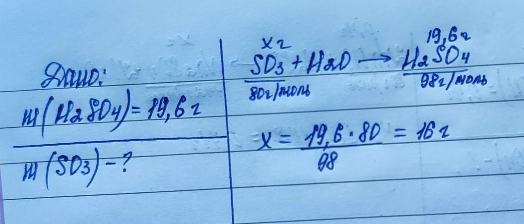 Обчисліть яка маса сульфатної кислоти утворюється в результаті взаємодії сульфур оксиду масою 16 г з водою?